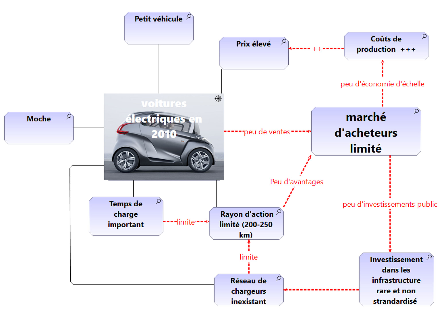 Pour réduire les couts et faire des économies d’échelle, il faut produire en masse, mais comme les véhicules sont chers et pas adaptés, personne n’en veut.