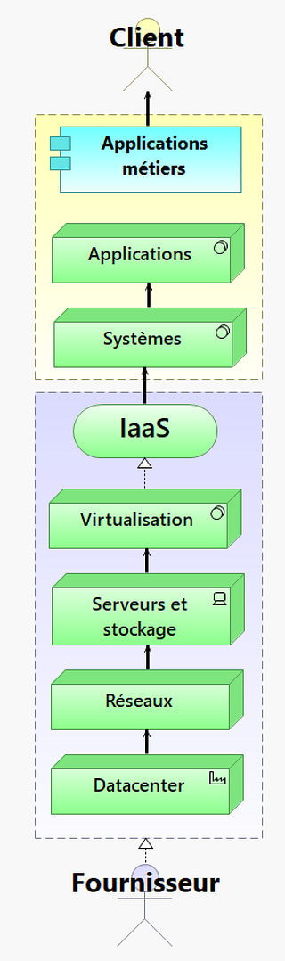 Le fournisseur lui s’occupe de provisionner et de fournir au fur et à mesure des besoins les infrastructures et les systèmes de virtualisation sous-jacents.